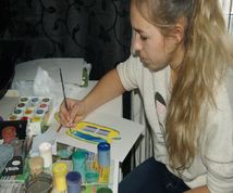 С самого детства мне нравилось рисовать, творить, что-то делать своими руками. Расстраивалась, когда мама, приходя с работы домой, не приносили мне цветной картон и клей. В основном, храню свои рисунки в своей комнате, потому что не очень люблю, когда смотрят на мои картины. Разрисовала стену в гостиной, серьезно. Мне понадобилось три дня, чтобы привести стену в прекрасный вид. Помимо рисования, я увлекаюсь игрой на гитаре и пианино. Я сама учусь играть разные песни. Но у меня одна проблема, мне неинтересно изучать ноты. Я просто запоминаю, как играется мелодия и воспроизвожу самостоятельно |