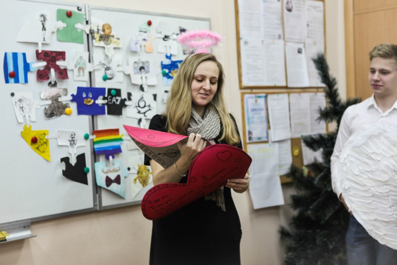 И последнее мероприятие на данный момент - День Святого Валентина. В этом году в школьном Парламенте больше активистов-парней, и сразу же поступило предложение сделать ангелов мужского пола. Я думаю, что больше всего этот день запомнился 9 «Г» классу, ведь именно в этот класс в виде ангела зашла сама Людмила Равилевна и лично поздравила с праздником.